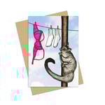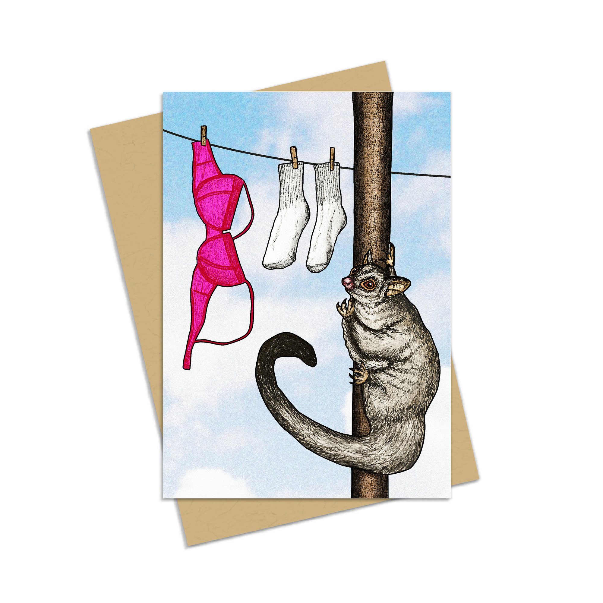 Cheeky Australiana Greeting card featuring a pervy possum getting into the undies on the line