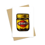 Cheeky Australiana Greeting card featuring a jar of Vegemite